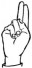 На ћирилици написано НАДИЦА ВУЧИЋЕВИЋ састоји се из 15 слова [?]. Исписано ћириличном једноручном азбуком за глувонеме: